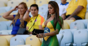 Από τη μία η Βραζιλιάνα που εμφανίστηκε ουσιαστικά γυμνή, ντυμένη ή μάλλον βαμμένη στα χρώματα της εθνικής βραζιλίας… και από την άλλη η ψηφισμένη η πιο σέξυ παρουσία του φετινού μουντιάλ η 26χρονη Ιβάνα Κνόλλς!
