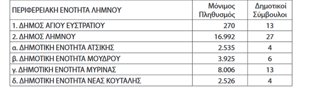 Στη Λήμνο και στον Άγιο Ευστράτιο ο αριθμός Δημοτικών Συμβούλων είναι: