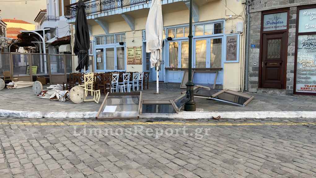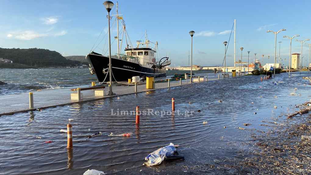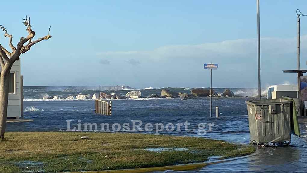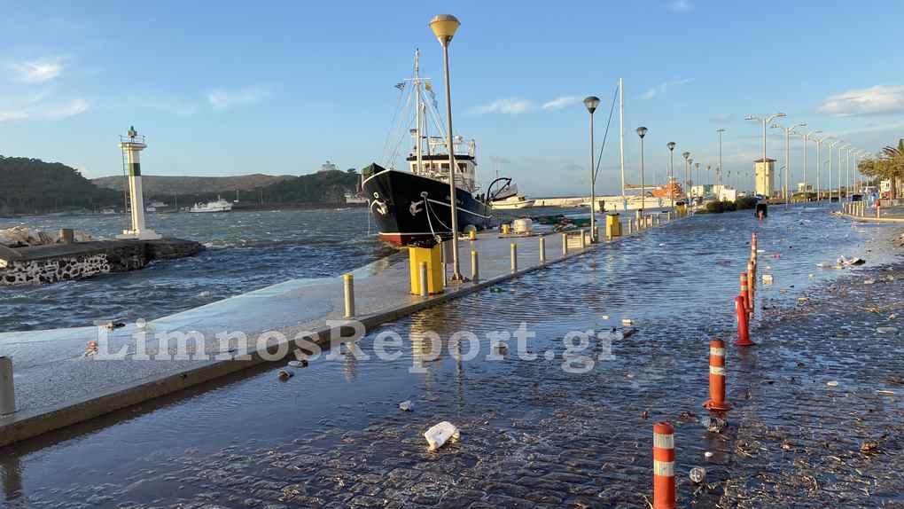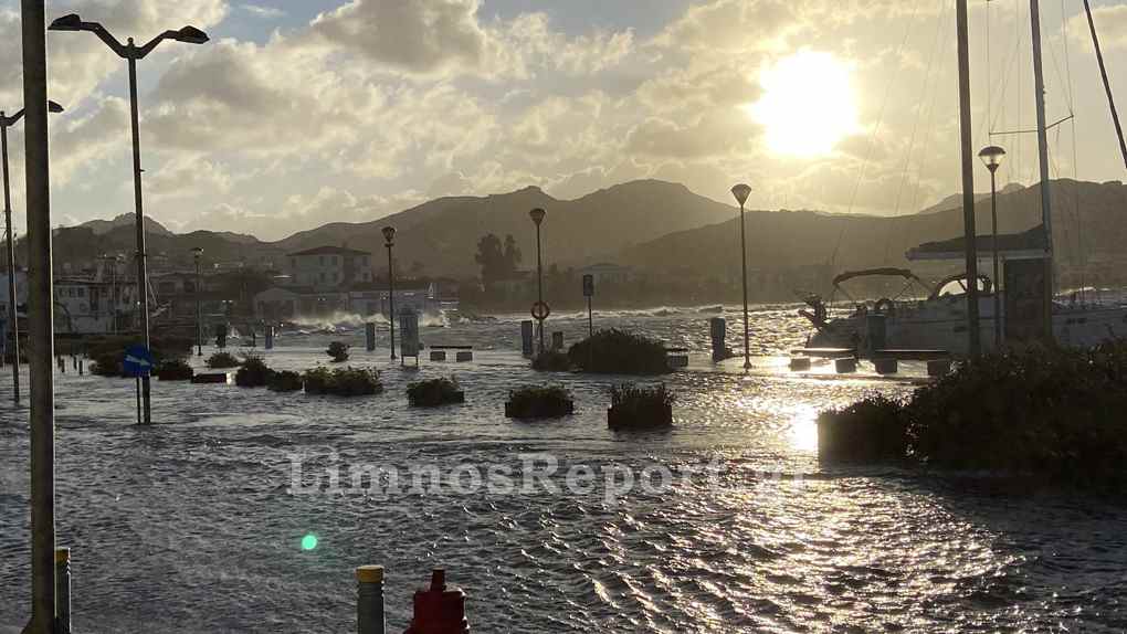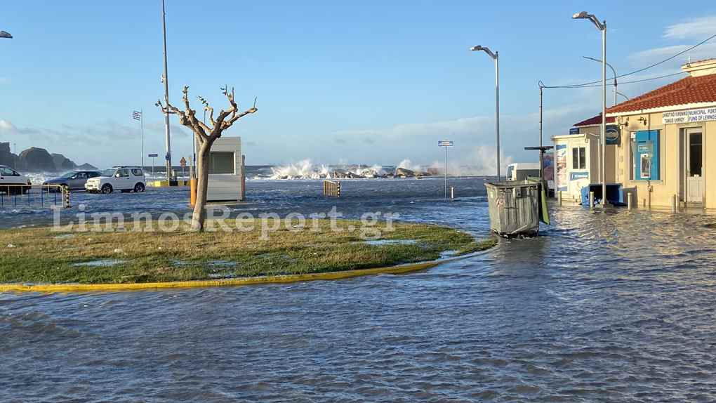 Απίστευτες εικόνες στην Μύρινα,σήμερα το πρωί από τους θυελλώδεις άνεμους η στάθμη του νερού ανέβηκε και κάλυψε το λιμάνι