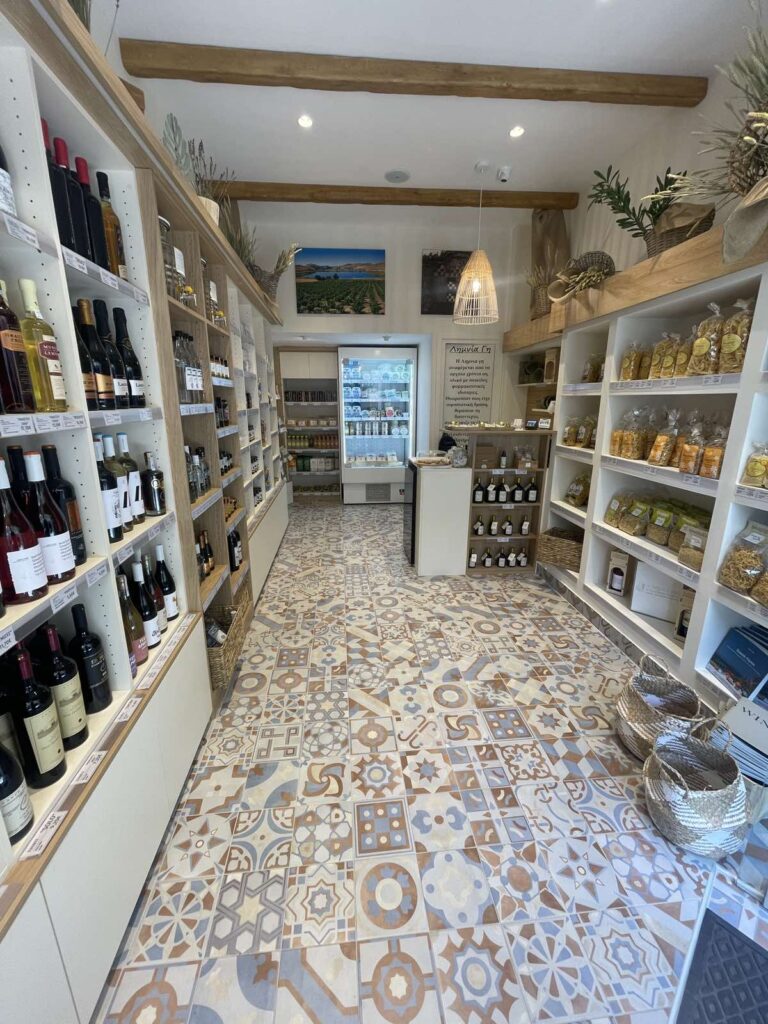 Όλα τα προϊόντα παρασκευάζονται με παραδοσιακές, σπιτικές συνταγές, με τα πιο αγνά υλικά και χωρίς συντηρητικά. , Φλωμάρια,εκλεκτά τυριά, μέλι, αλλαντικά, αλίπαστα, παξιμάδια, Ελαιόλαδο, τεράστια ποικιλία κρασιών, αναψυκτικών με την γκάμα μας να εμπλουτίζεται συνεχώς και οι τιμές εξαιρετικές!