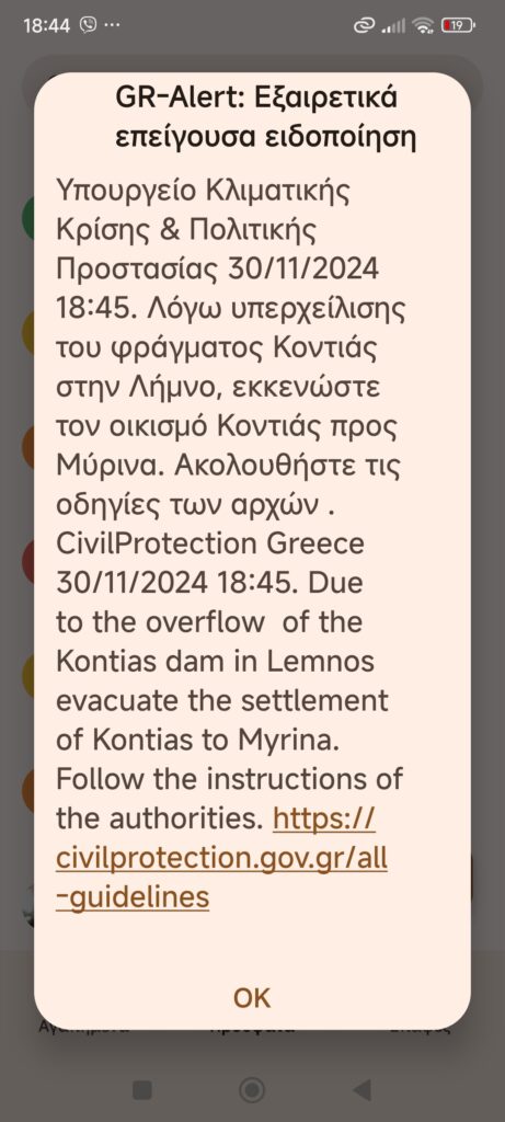 Σοβαρή εξέλιξη κατόπιν επικοινωνίας της Δημάρχου με τον Υπουργό κ. Κικίλια, ήχησε το 112 για εκκένωση του οικισμού του χωριού καθώς το φράγμα που βρίσκεται σε κοντινή απόσταση έχει υπερχειλίσει .