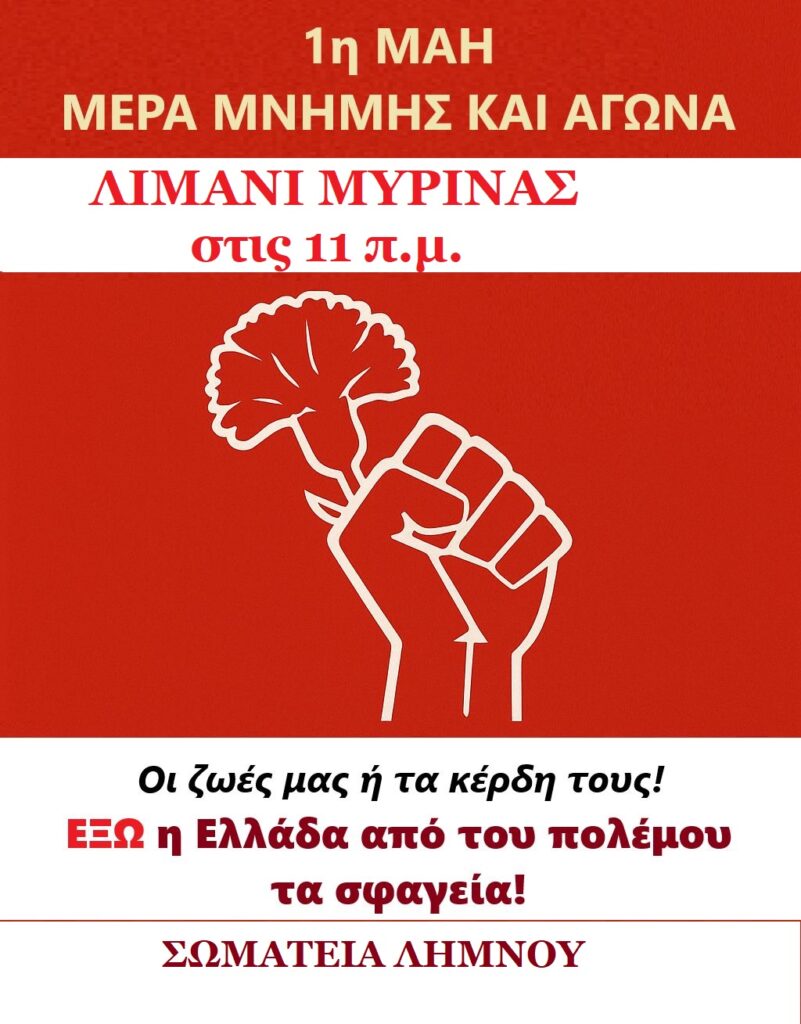 Την 1η του Μάη τιμάμε τους αγώνες και τις θυσίες της εργατικής τάξης για μια ζωή χωρίς φτώχεια, πολέμους και εκμετάλλευση. Παίρνουμε τη σκυτάλη από τους μεγάλους αγώνες του προηγούμενου διαστήματος και συνεχίζουμε. Δίνουμε τη δική μας απάντηση στην εγκληματική πολιτική της κυβέρνησης και των υπόλοιπων κομμάτων, του κεφαλαίου, της Ε.Ε. και του Ν.Α.Τ.Ο.