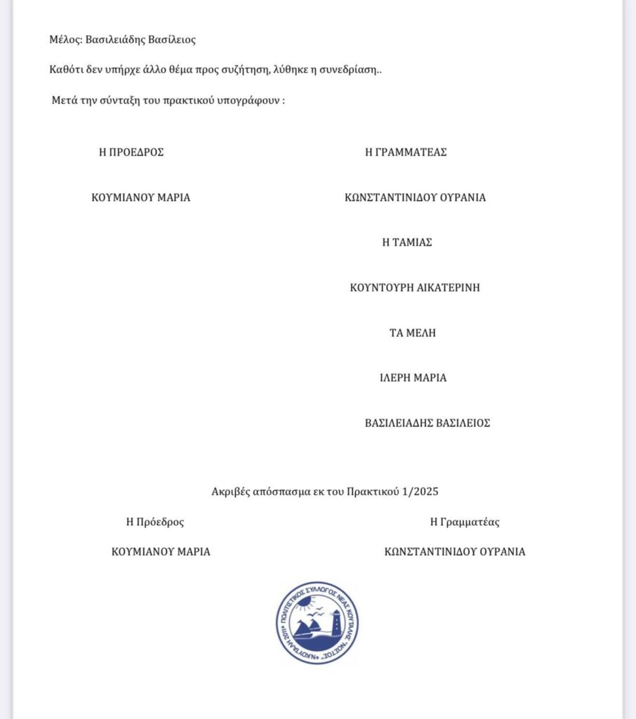 Επανεκλογή στην θέση της Προέδρου του Πολιτιστικού Σύλλογου Νέας Κούταλης, Νόστος για την Μαρία Κουμιανού .