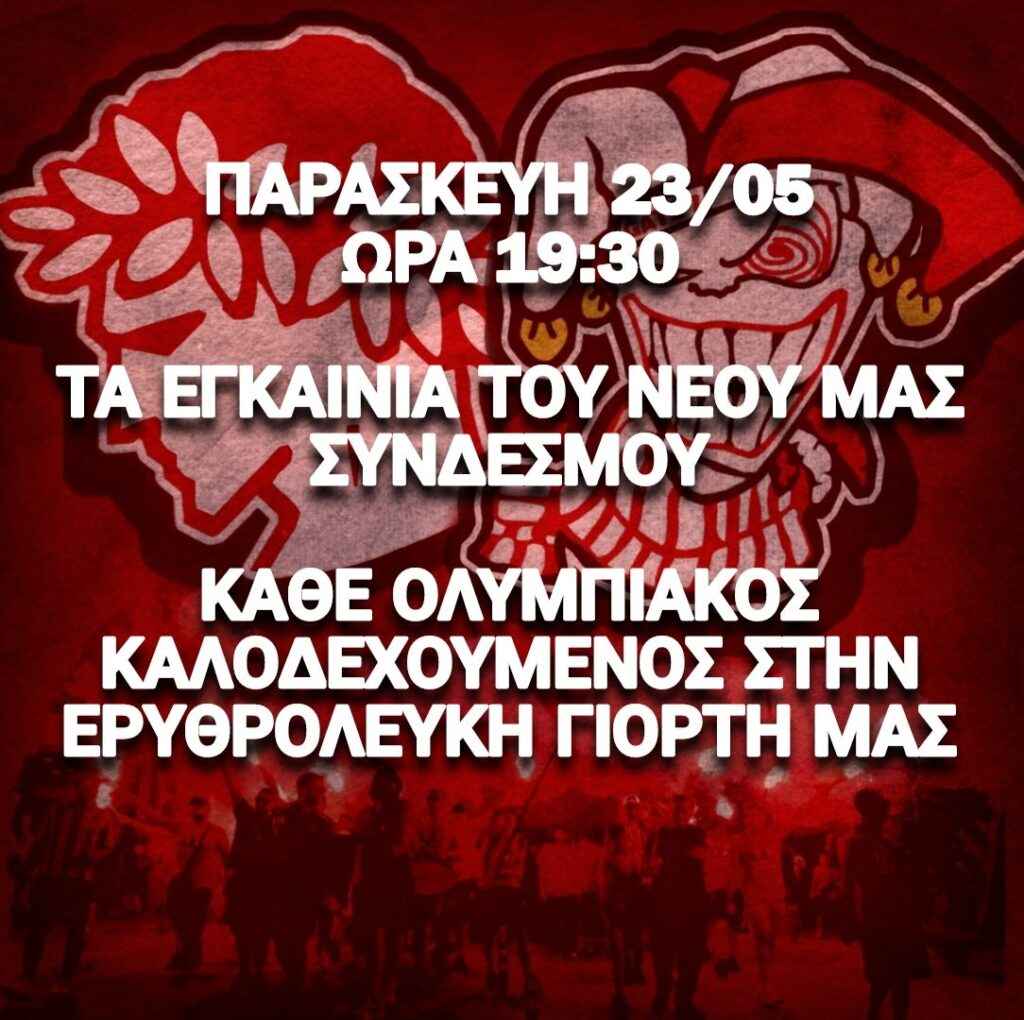 Με ανακοινωσή του ο Σύνδεσμος φιλάθλων του Ολυμπιακού στην Λήμνο καλεί τα μέλη και φίλους της ομάδας στα εγκαίνια του νέου χώρου του.