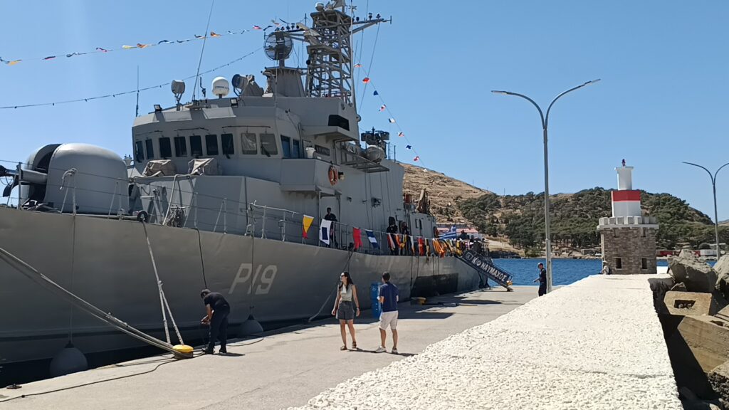 Στον λιμανι της Μύρινας κατέπλευσε η Κανονιοφόρος «ΝΑΥΜΑΧΟΣ» του Πολεμικού Ναυτικού, στο πλαίσιο των εκδηλώσεων της Ναυτικής Εβδομάδας που διοργανώνεται σε συνεργασία με το Λιμενικό Σώμα – Ελληνική Ακτοφυλακή και θα διαρκέσει έως τις 6 Ιουλίου