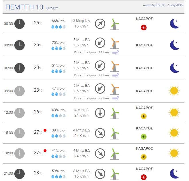 Πρόγνωση για αύριο Πέμπτη, 10-07-2025