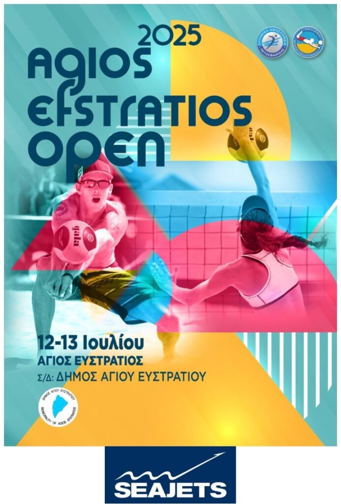 O Δήμος Αγίου Ευστρατίου, σε συνεργασία με την Ελληνική Ομοσπονδία Πετοσφαίρισης, διοργανώnει Τουρνουά BEACH VOLLEY OPEN 12 έως 13 Ιουλίου, στην παραλία του οικισμού.