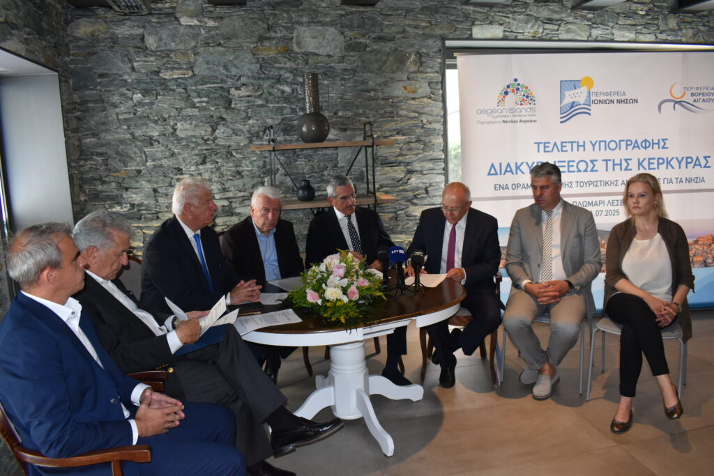 Η Διακήρυξη της Κέρκυρας υπεγράφη στο Πλωμάρι με οικοδεσπότη τον Περιφερειάρχη Βορείου Αιγαίου Κωνσταντίνο Μουτζούρη, τον Γιώργο Χατζημάρκο Νοτίου Αιγαίου και Ιωάννη Τρεπεκλή Ιονίων Νήσων, ενώ το παρών έδωσε και ο περιφερειάρχης Ανατολικής Μακεδονίας και Θράκης Χριστόδουλος Τοψίδης.