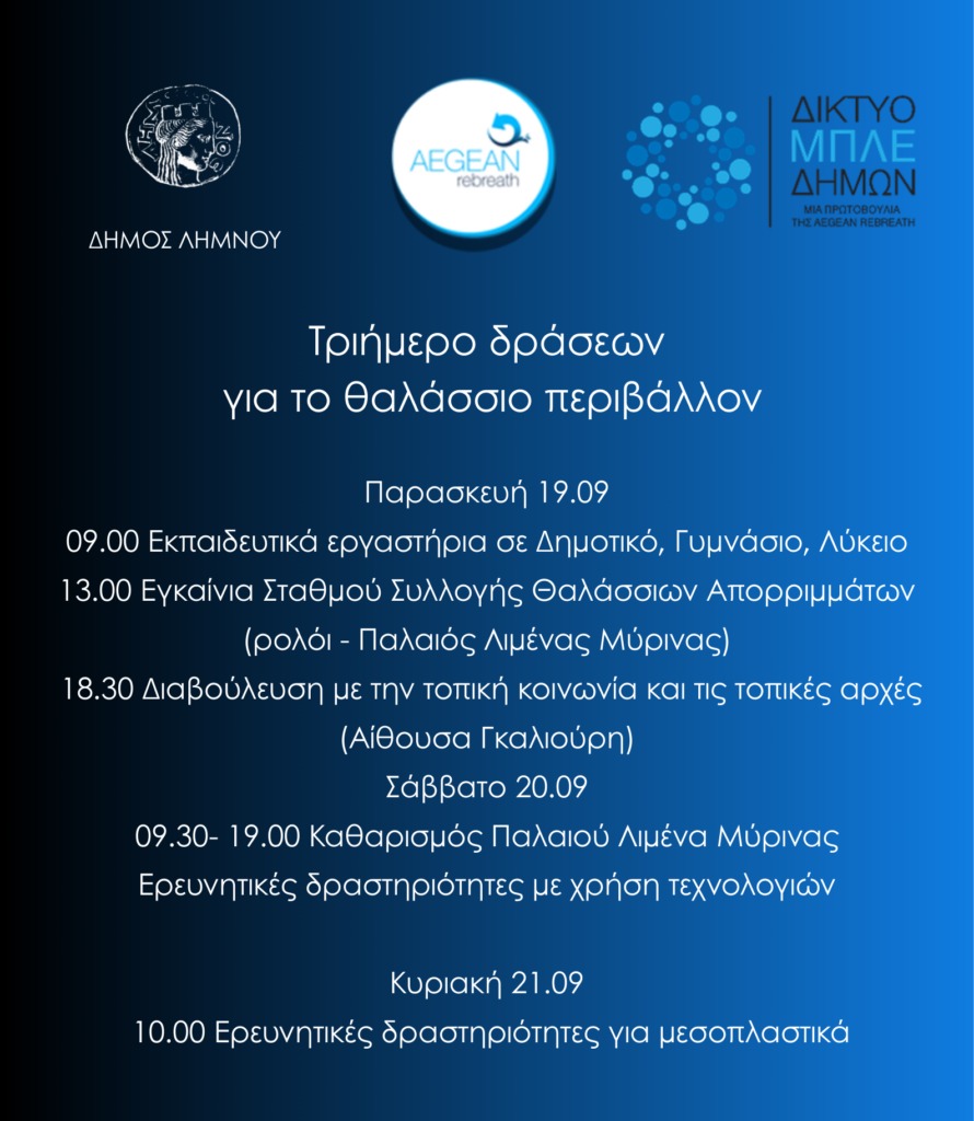 υλοποίηση τριήμερων δράσεων για το θαλάσσιο περιβάλλον, ο Δήμος Λήμνου σας