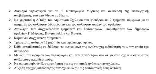 λειτουργικές υποβαθμίσεις δημοτικών σχολείων και νηπιαγωγείων της Λήμνου”.