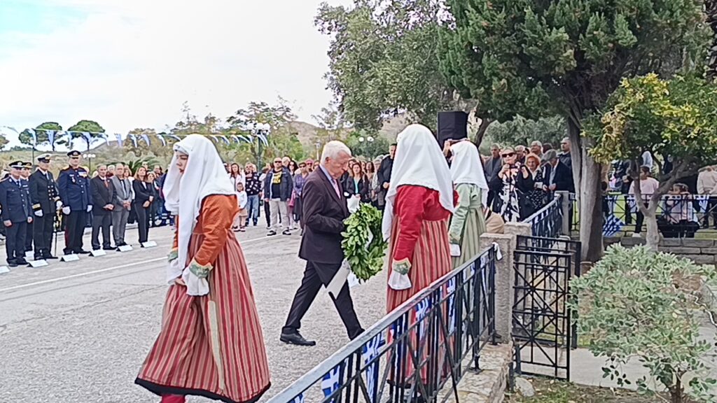 Οι εκδηλώσεις ξεκίνησαν με τη δοξολογία στον Ιερό Ναό της Αγίας Τριάδας στη Μύρινα, όπου τελέστηκε επιμνημόσυνη δέηση υπέρ των πεσόντων ηρώων του ’40. Ακολούθησε κατάθεση στεφάνων στο Ηρώο της πόλης και η καθιερωμένη παρέλαση των μαθητών, συλλόγων και στρατιωτικών τμημάτων, που γέμισε περηφάνεια όλους τους παρευρισκόμενους.