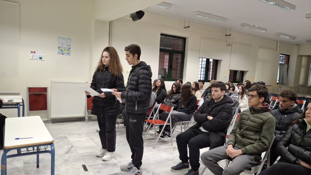 - Το Γενικό Λύκειο Αλμυρού παρουσίασε εργασία με θέμα «Έμφυλη βία και Ευρωπαϊκή Ένωση», εξετάζοντας τον ρόλο των ευρωπαϊκών πολιτικών στην αντιμετώπιση της βίας κατά των γυναικών.