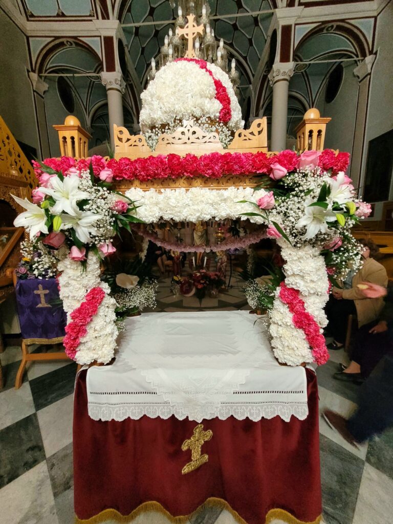 Η εικόνα είναι βαθιά συμβολική. Τα λουλούδια, φρέσκα και ευωδιαστά, μαζεμένα από αυλές και χωράφια, μετατρέπονται σε πολύχρωμα μοτίβα πάνω στον Επιτάφιο. Λευκά, ροζ και κόκκινα άνθη μπλέκονται αρμονικά, δημιουργώντας ένα αποτέλεσμα που δεν είναι μόνο αισθητικά όμορφο, αλλά και βαθιά πνευματικό. Κάθε λουλούδι μοιάζει να κουβαλά προσευχή, μνήμη και πίστη.