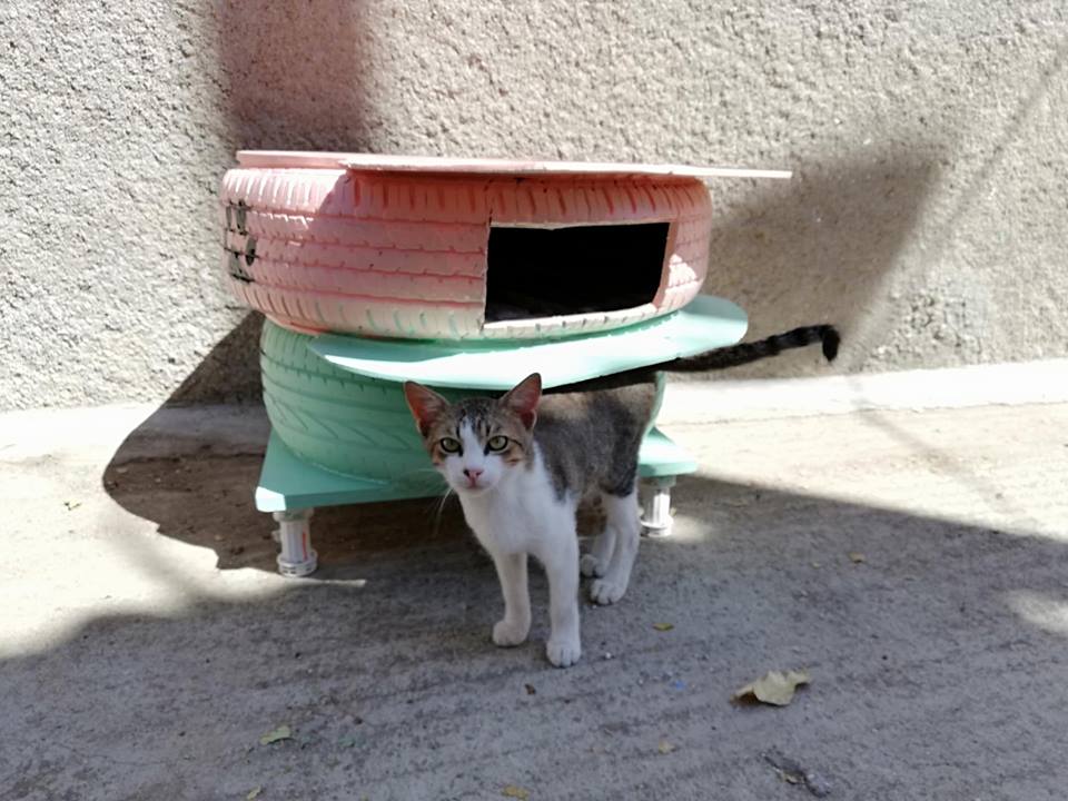 Με παλιά λάστιχα αυτοκινήτου που συνήθως απλά τα πετάμε και μολύνουμε το περιβάλλον, πήρε χρώματα έβαψε και τα έκανε πανέμορφα καταφύγια για τις γάτες!!!