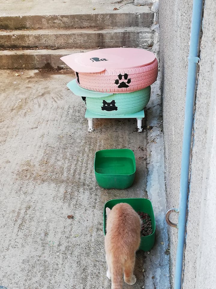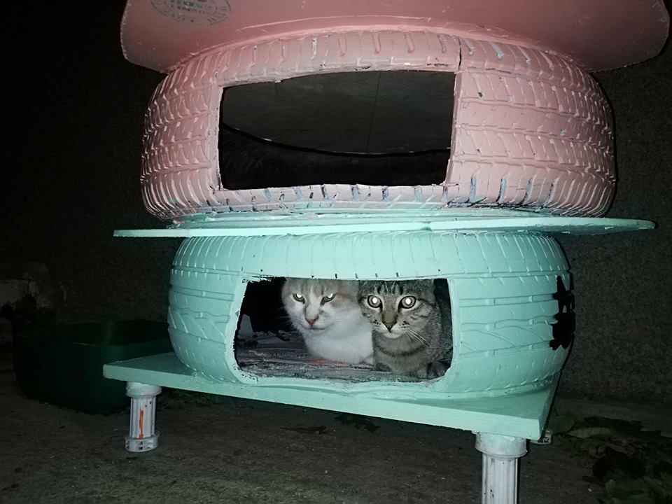 Με παλιά λάστιχα αυτοκινήτου που συνήθως απλά τα πετάμε και μολύνουμε το περιβάλλον, πήρε χρώματα έβαψε και τα έκανε πανέμορφα καταφύγια για τις γάτες!!!