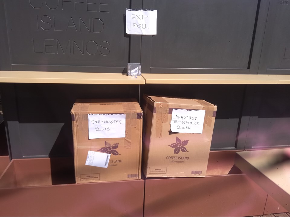 Ένα πρωτότυπο και ευρηματικό τρόπο βρήκε το coffee island στην Μύρινα να προβλέψει το αποτέλεσμα των εκλογών στην Λήμνο!! Έστησε το δικό του exit poll!!