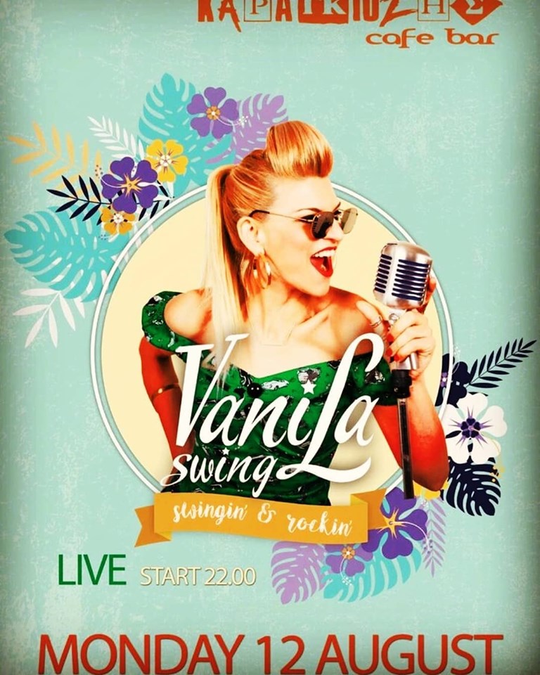 Οι VaniLa Swing, ανεβαίνουν σήμερα Δευτέρα στις 22:00 στο stage του Karagiozis Cafe bar με… άγριες διαθέσεις και μας υπόσχονται μια βραδιά με άκρως χορευτική διάθεση σε ένα δυναμικό live, με τραγούδια δικά τους αλλά και με επιτυχίες διασκευασμένες μόνο όπως αυτοί ξέρουν, σε ρυθμούς Rock n Roll, rockabilly του ’50 και swing του ’40 με αναφορές στο χθες και στο σήμερα.