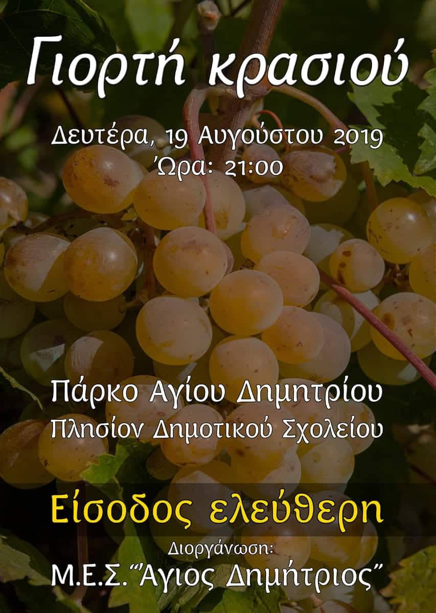 Ο Μ.Ε.Σ «Ο Άγιος Δημήτριος” και οι κάτοικοι σας καλούν στη γιορτή κρασιού που θα πραγματοποιηθεί στο πλησίον του Δημοτικού σχολείο Αγίου Δημητρίου