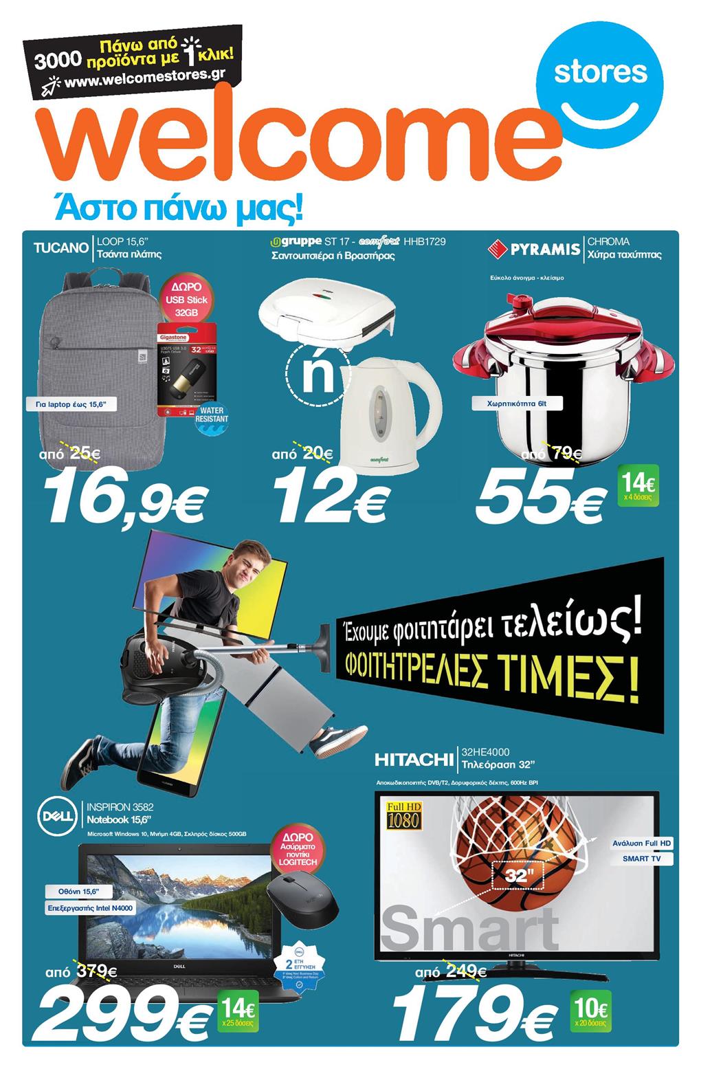 Βρες τώρα στο ολοκαίνουργιο Φυλλάδιο Προσφορών των Welcome Stores ό,τι χρειάζεσαι για το νέο σου ξεκίνημα στη σχολή σε τιμές… σταθερά Φοιτητρελές!