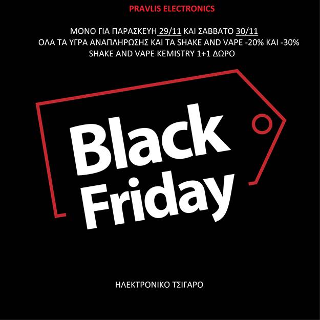 H Black Friday χτύπησε και στο ηλεκτρονικό τσιγάρο, στο κατάστημα Pravlis Electronics στο λιμάνι της Μύρινας.