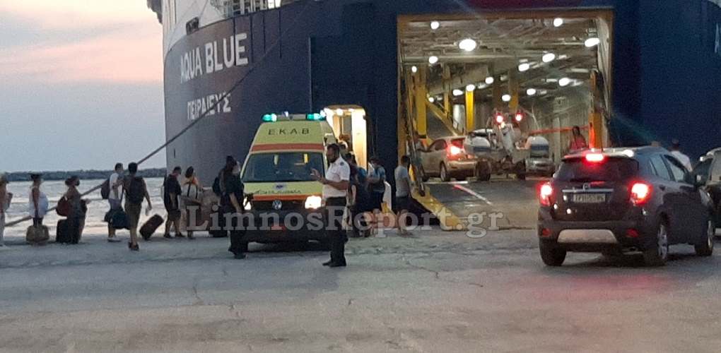 Συγκεκριμένα στο χθεσινό δρομολόγιο 9 Αυγούστου, στις 20:45 του Aqua Blue για Λαύριο στο λιμάνι της Μυρινας, κατέφθασε με ασθενοφόρο του ΕΚΑΒ και επιβιβάστηκε 55χρονη τραυματίας στο πόδι (κάταγμα), προκειμένου να μεταφερθεί σε νοσοκομείο των Αθηνών.
