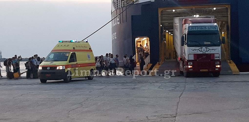 Συγκεκριμένα στο χθεσινό δρομολόγιο 9 Αυγούστου, στις 20:45 του Aqua Blue για Λαύριο στο λιμάνι της Μυρινας, κατέφθασε με ασθενοφόρο του ΕΚΑΒ και επιβιβάστηκε 55χρονη τραυματίας στο πόδι (κάταγμα), προκειμένου να μεταφερθεί σε νοσοκομείο των Αθηνών.