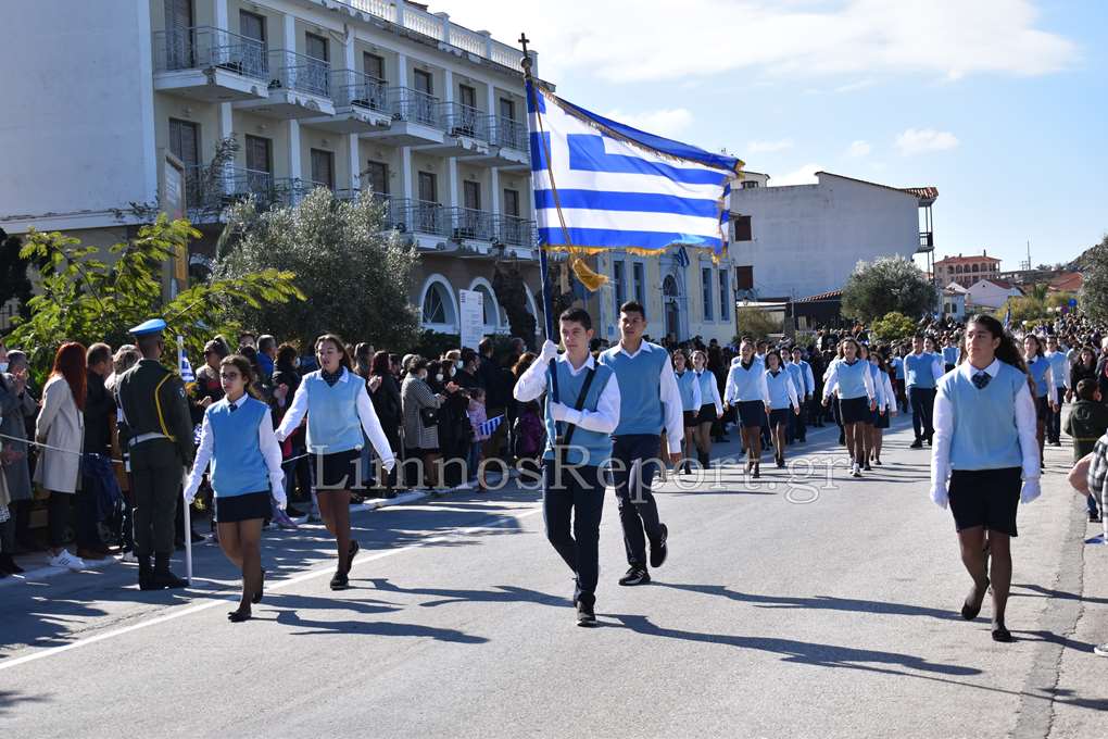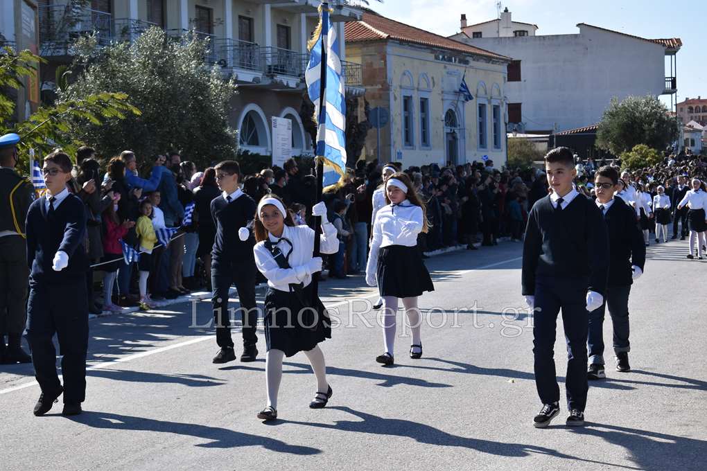 Στιγμές εθνικής υπερηφάνειας έζησαν όσοι βρέθηκαν το πρωί της Πέμπτης στο Ρωμείκο γιαλό στη Μύρινα για να παρακολουθήσουν την μαθητική και στρατιωτική παρέλαση για την επέτειο της 28ης Οκτωβρίου.