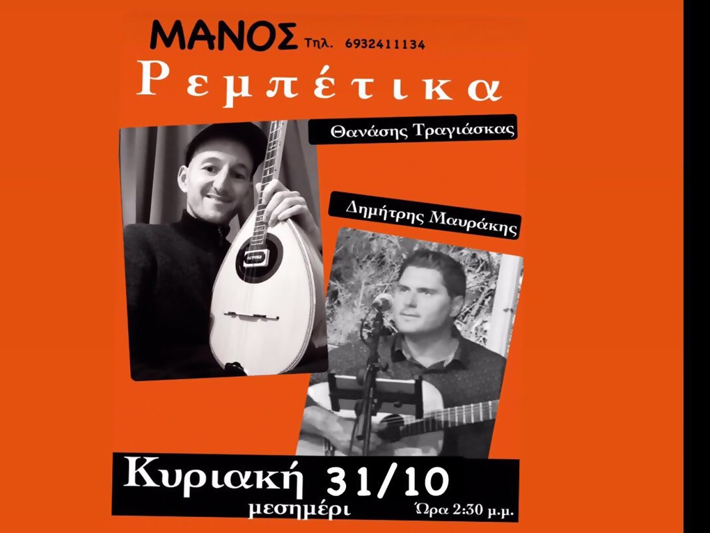 Τραπεζάκια έξω (και μέσα) Live αυτήν την Κυριακή με Ρεμπέτικα στο ΜΑΝΟΣ