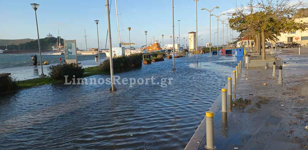 Απίστευτες εικόνες στην Μύρινα,σήμερα το πρωί από τους θυελλώδεις άνεμους η στάθμη του νερού ανέβηκε και κάλυψε το λιμάνι
