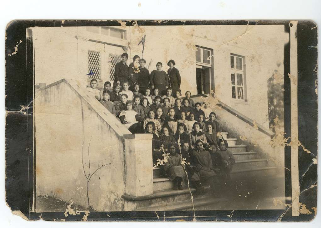 - Η μητέρα της αρθρογράφου Μαρία (το Μαράκι του Κουρίσου), όπως η ίδια το σημειώνει στην πίσω πλευρά της φωτογραφίας ντοκουμέντο από το Ρεϊζντερε Ερυθραίας Μικράς Ασίας! Της μοναδικής φωτογραφίας από την κωμόπολη των 4.500 κατοίκων στην απογραφή του έτους 1919, που διασώθηκε από την λαίλαπα του 1922! Όπου εικονίζονται οι μαθήτριες και οι δασκάλες τους στο Παρθεναγωγείο του Ρεΐζντερε κατά το σχολικό έτος 1919-1920! Η σημειωμένη με σταυρό από πάνω της, είναι η Μαρία η Κουρίσου, η κόρη της Καλομοίρας… Μια φωτογραφία κατάθεση ψυχής στην Μαρία Μικρουδάκη, την εγγονή της, μαζί με την ποιητική της προίκα, όπως την κατέγραψε στο τετράδιο που της παρέδωσε…