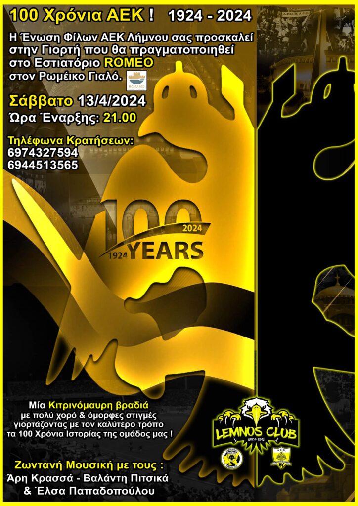Στην Λήμνο ο πολύ δραστήριος σύλλογος των Φίλων της γιόρτασε σε μια μοναδική κιτρινόμαυρη εκδήλωση τα 100 χρόνια της αγαπημένης της ομάδας!