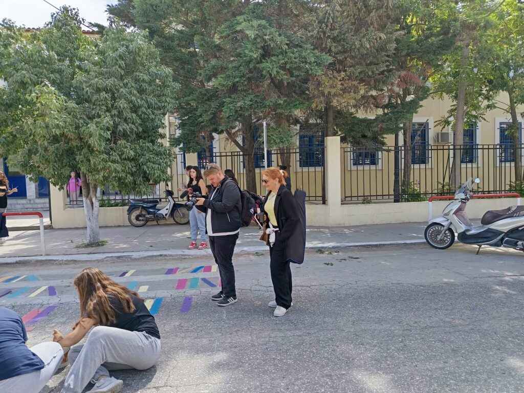Σήμερα το πρωί βρέθηκαν στην Λ. Δημοκρατίας και συνομίλησαν με τους μαθητές του λυκείου που χρωμάτιζαν τις διαγραμμίσεις.