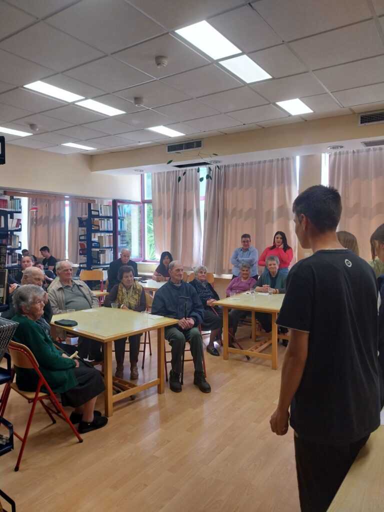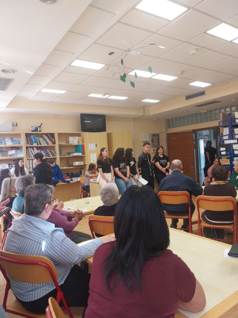 Επίσης, διοργανώθηκε εργαστήρι δημιουργικής γραφής, όπου αξιοποιήθηκαν πληροφορίες από τις συνεντεύξεις των ωφελουμένων και δημιουργήθηκαν “ήρωες” μέσα στα αφηγήματα των παιδιών (ο κος Βαμβάκης, ο Τέρης ο λαγός κ.α.). Οι μαθητές δημιούργησαν 4 αφηγήματα, τα οποία παρουσίασαν χθες στους πληροφορητές τους, τους ωφελούμενους, ενώ ακολούθησαν ερωτήσεις και συζήτηση.