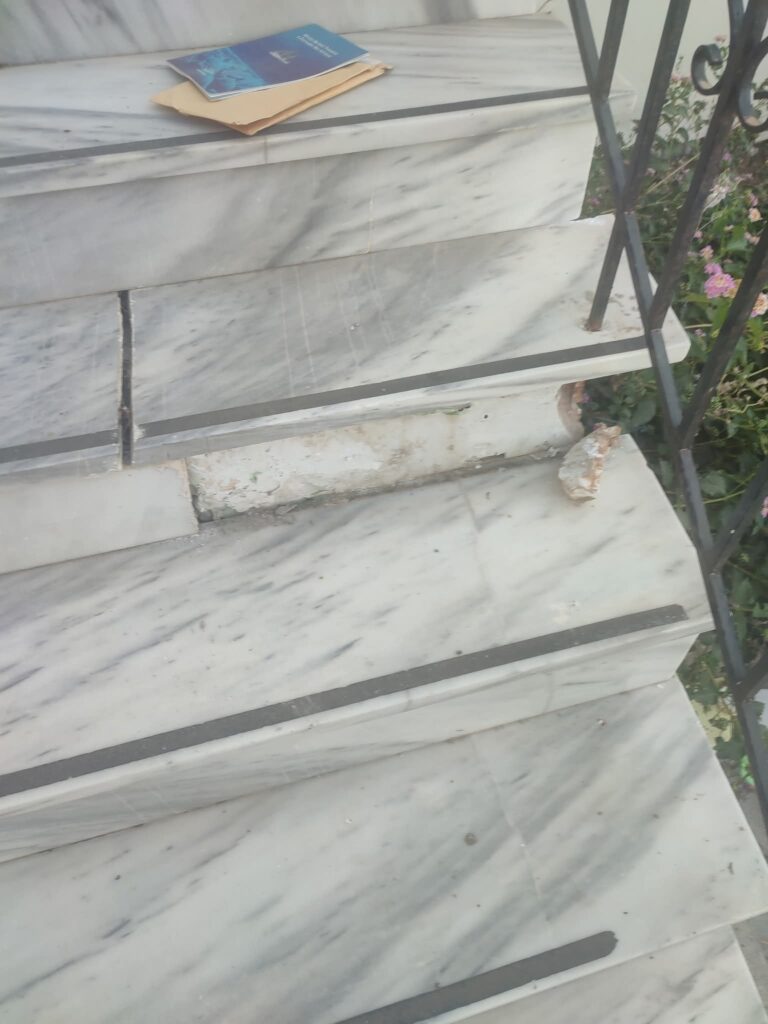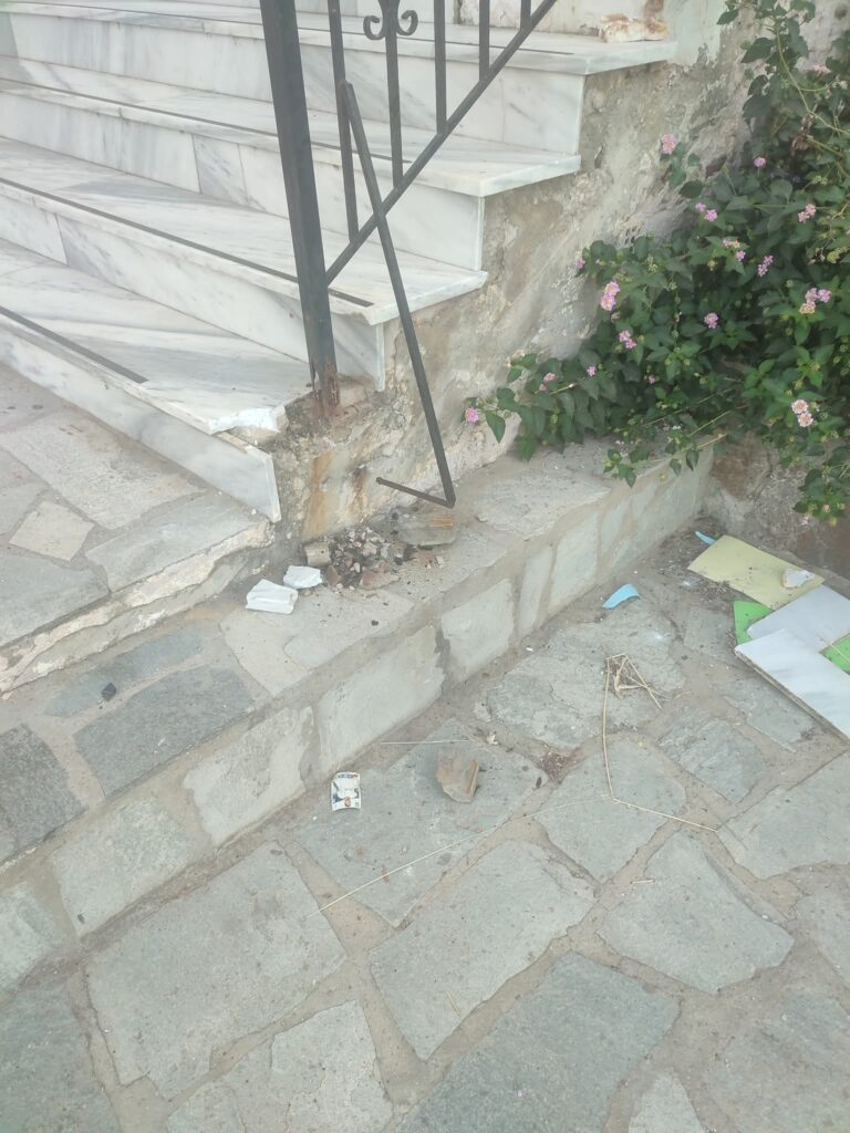 Πιο συγκεκριμένα σήμερα το πρωί, Τρίτη κατά την προσέλευσή του στο σχολείο διαπίστωσε ότι στον εξωτερικό του κτηρίου χώρο είχαν γίνει από αγνώστους, πιθανόν παιδιά όπως αναφέρει και η ανάρτηση, καταστροφές στα σκαλιά αλλά και στα κάγκελα της περίφραξής.