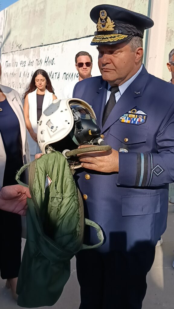 Για πρώτη φορά η κάσκα του υποσμηναγού που εκτείθεται στο Πολεμικό μουσειο της ΠΑ στο Τατόι , βρίσκεται στον Άγιο Ευστράτιο στο τόπο που κατέπεσε με το αεροπλάνο του.