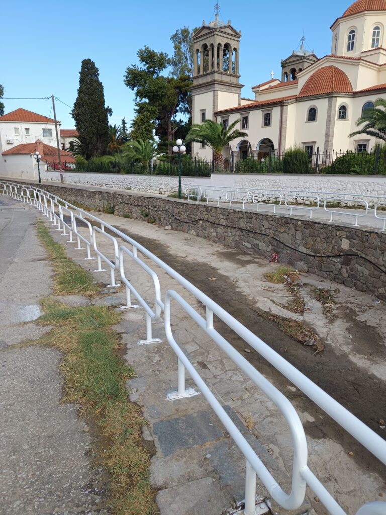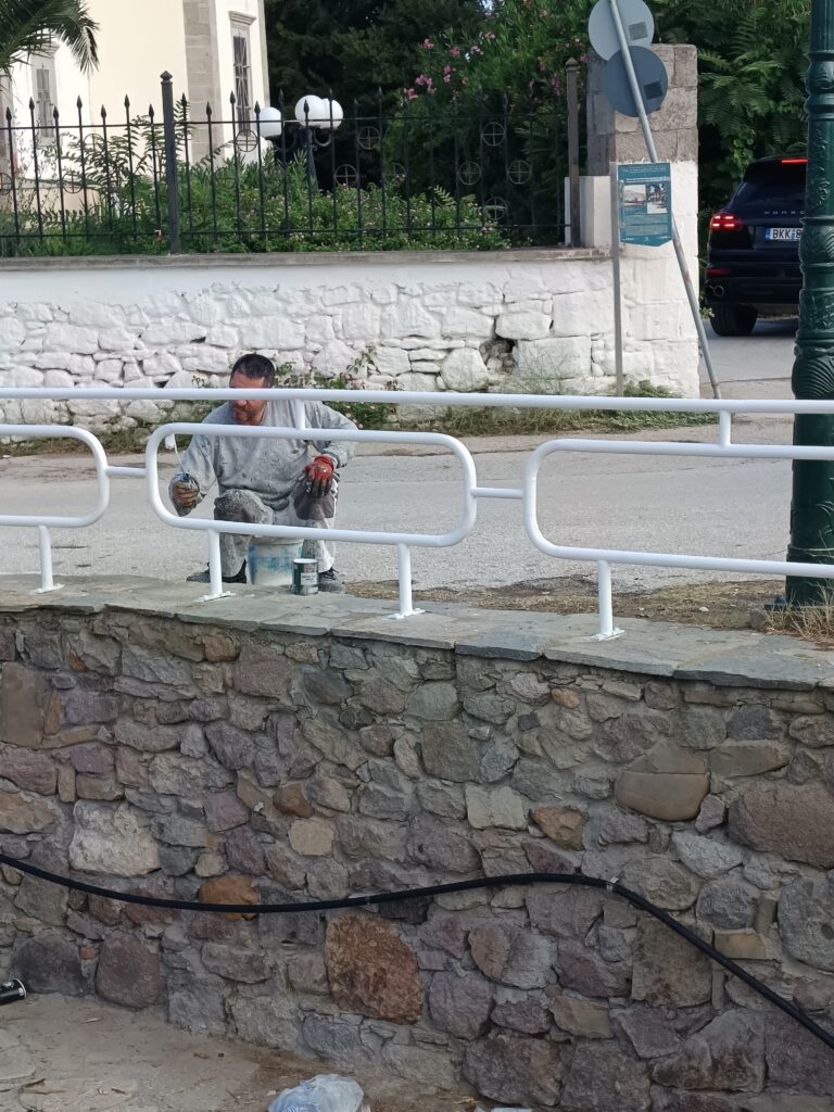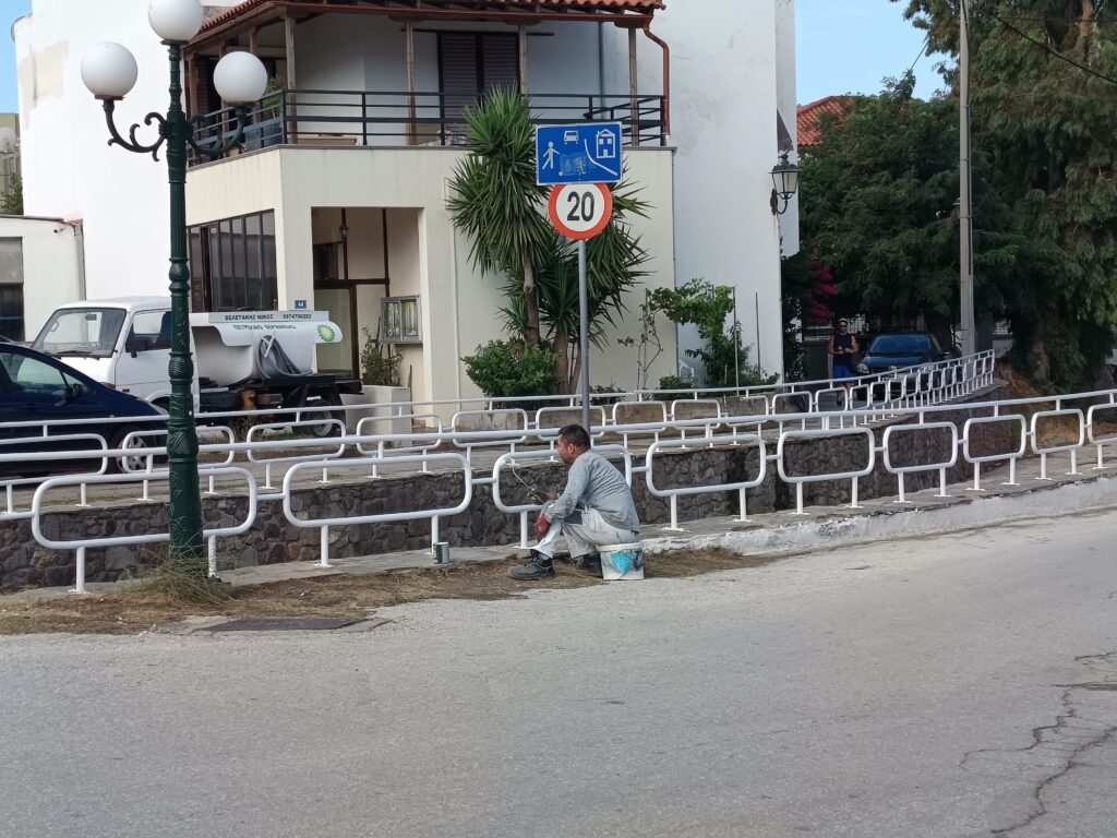 Τα κάγκελα προστασίας κατα μήκος στο ρέμα της Μητρόπολης στην Μύρινα βάφονται μετά από πολύ καιρό και αμέσως έδειξαν όμορφα και καθαρά!