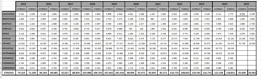 ΣΤΑΤΙΣΤΙΚΑ ΣΤΟΙΧΕΙΑ ΕΠΙΒΑΤΩΝ 2015 ΕΩΣ ΙΟΥΛΙΟ 2025 (2)