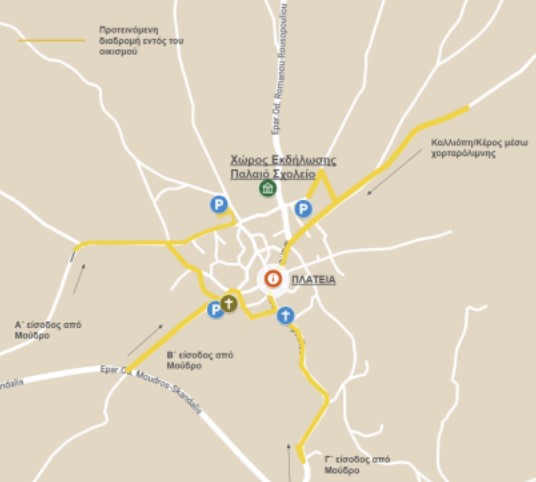 Η στάθμευση στο Ρουσσόπουλι θα γίνεται παρόδια, αλλά για τις ανάγκες της ημέρας και σε χώρους κοντά στον χώρο της εκδήλωσης που θα υπάρχει σχετική σήμανση, όπως φαίνονται στο σκαρίφημα.