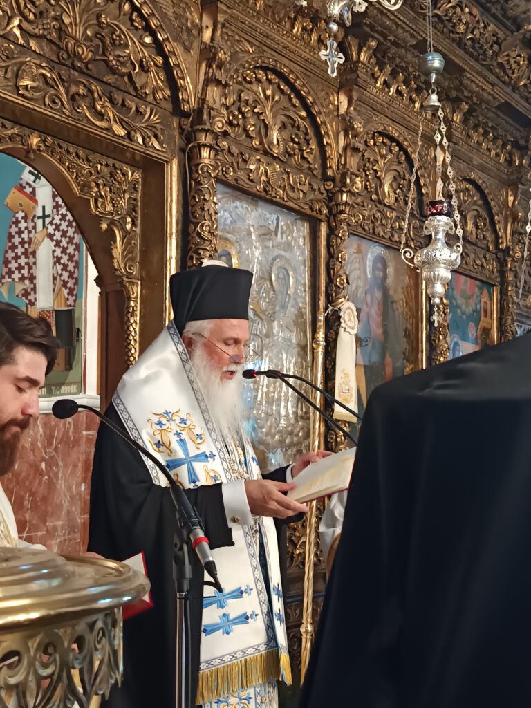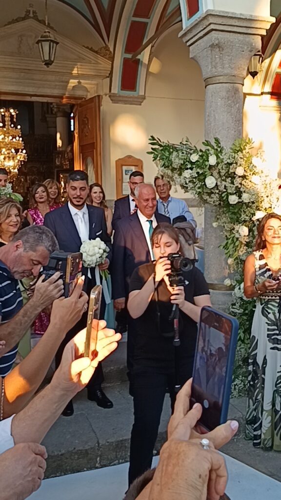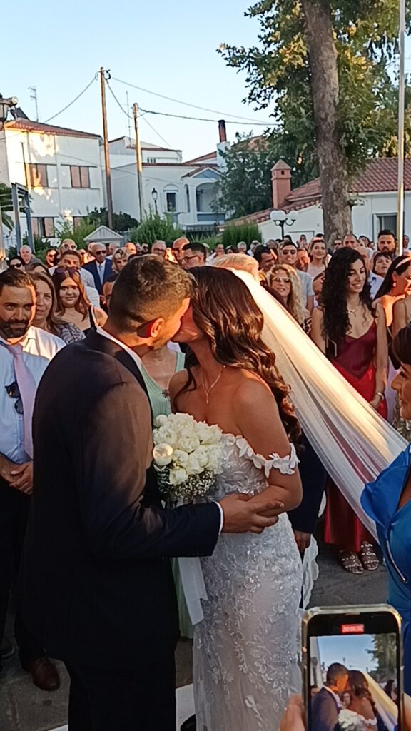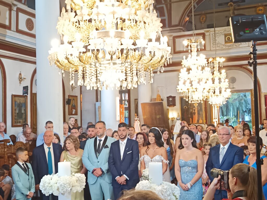 Πλήθος συγγενών και φίλων γέμισαν την εκκλησία της Αγίας Τριάδας στην Μύρινα όπου και τελέστηκε ο γάμος χοροστατούντος του Σεβασμιότατου Ιεροθέου.