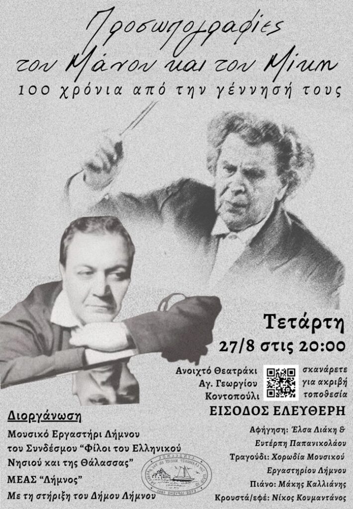 Μια ξεχωριστή πολιτιστική εκδήλωση πραγματοποιήθηκε το βράδυ της Τετάρτης στο θεατράκι του Αγίου Γεωργίου στο Κοντοπούλι. Το Μουσικό Εργαστήρι Λήμνου τίμησε με έναν ιδιαίτερο τρόπο τα 100 χρόνια από τη γέννηση των δύο σπουδαίων Ελλήνων δημιουργών, Μάνου Χατζιδάκι και Μίκη Θεοδωράκη, παρουσιάζοντας μια παράσταση που ξεπέρασε τα όρια μιας απλής συναυλίας.