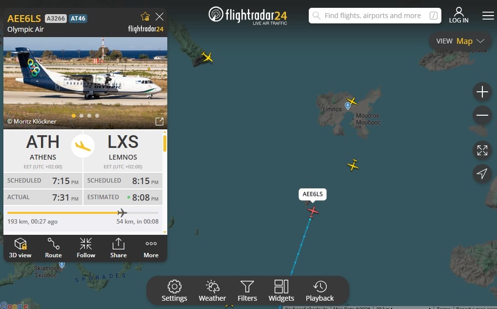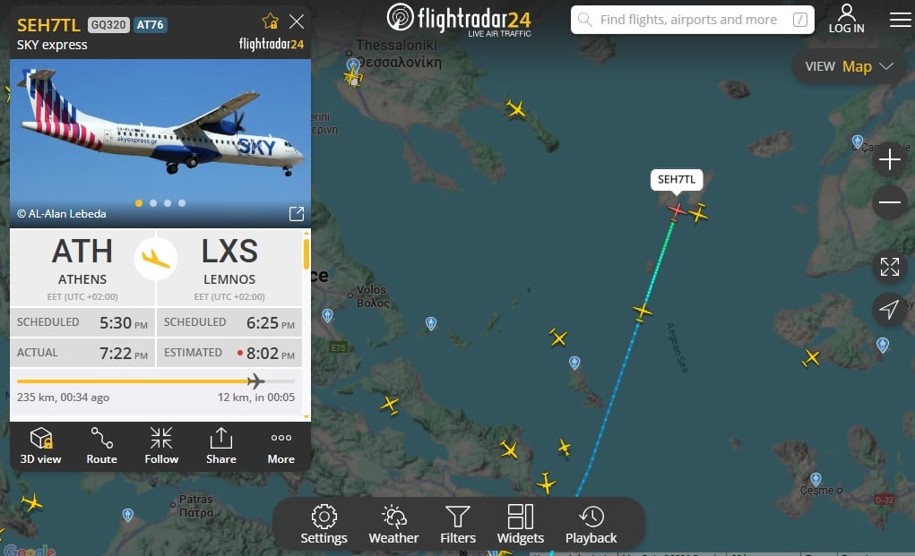 Σύμφωνα με τα στοιχεία πτήσεων, η απογευματινή πτήση της Sky Express από το αεροδρόμιο «Ελευθέριος Βενιζέλος» προς τη Λήμνο, αν και ήταν προγραμματισμένη να αναχωρήσει στις 17:30, τελικά απογειώθηκε με σχεδόν δύο ώρες καθυστέρηση, φτάνοντας στο νησί αργά το βράδυ.