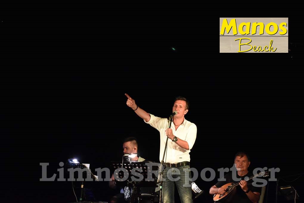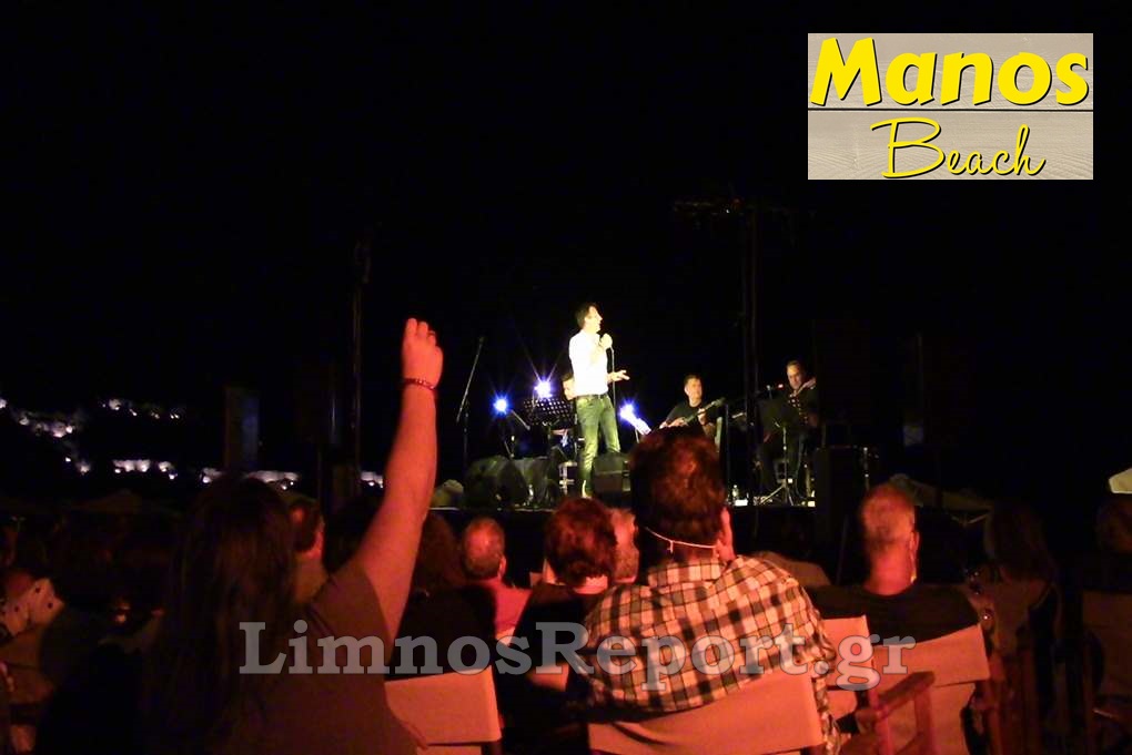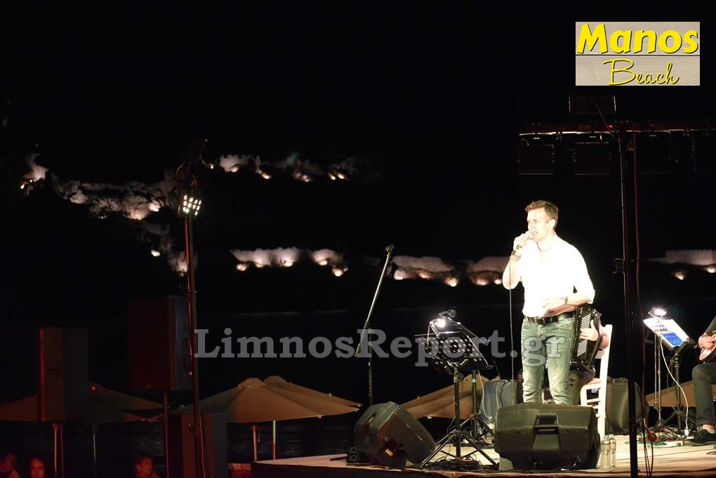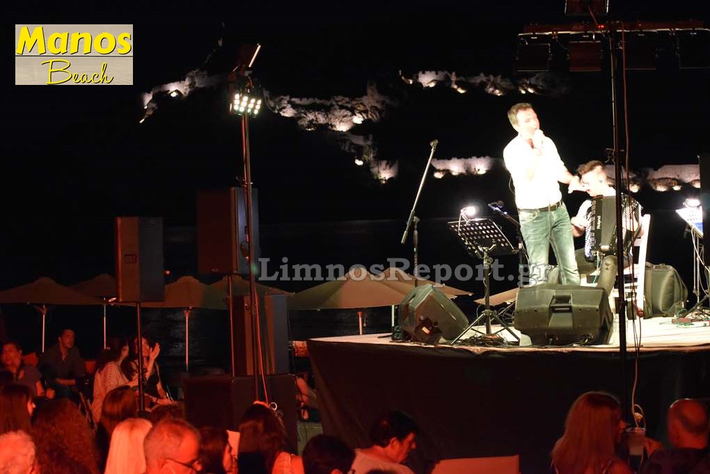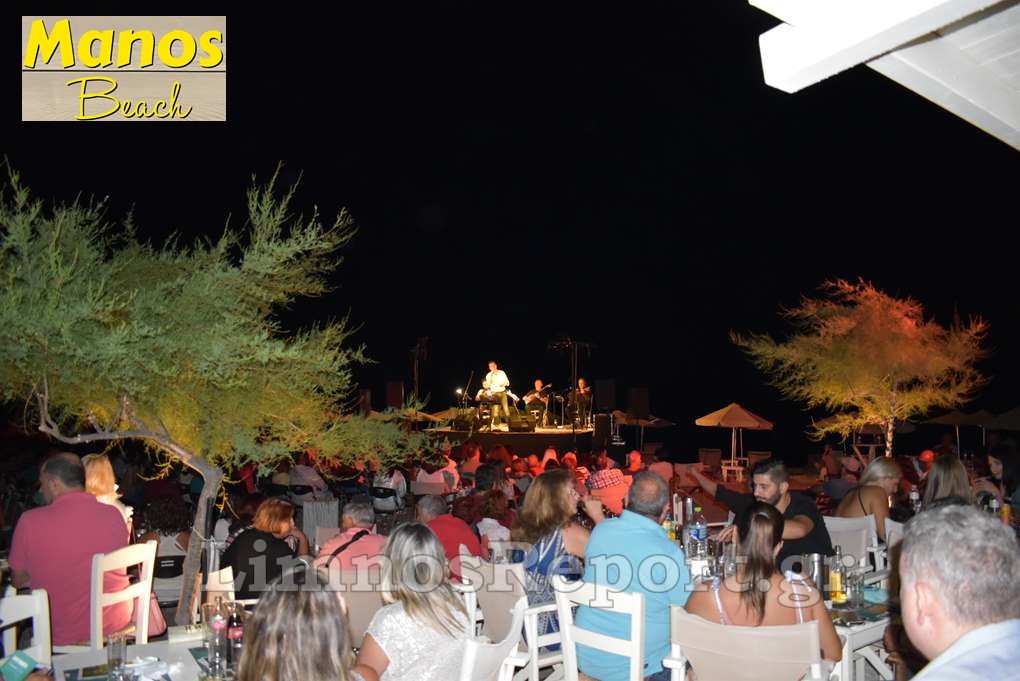 Την Τρίτη ο καλλιτέχνης φιλοξενήθηκε στο Μάνος της Μύρινας Λήμνου, που είχε μετατραπεί σε ένα ασφαλή χώρο και συνοδεία της ζωντανής ορχήστρας του, δημιούργησε μια αγκαλιά με τους θαμώνες έχοντας ως ντεκόρ το φωταγωγημένο κάστρο της Μύρινας.